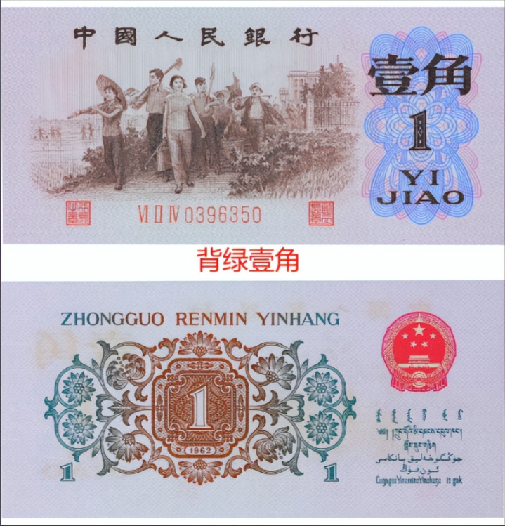 今天要先容的是1962年刊行的背绿一角纸币,它被分为带水印和不带水印的,他们的保藏价钱是不相同的,不带水印的刊行量更大一些,当今单张全新品相的保藏价钱在3000元驾驭,带水印的一角纸币保藏价钱就高了,品相好少量的都大概达到上万元以上。