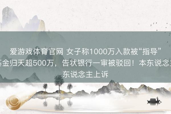 爱游戏体育官网 女子称1000万入款被“指导”购买基金归天超500万,告状银行一审被驳回!本东说念主上诉