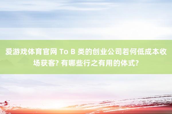 爱游戏体育官网 To B 类的创业公司若何低成本收场获客? 有哪些行之有用的体式?