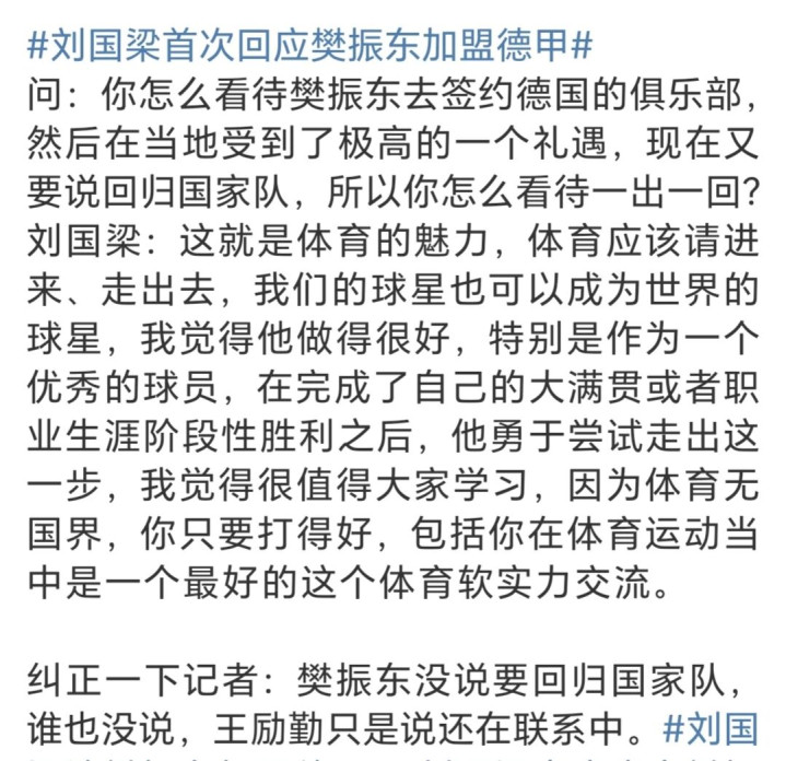 这亦然自从樊振东加盟德甲之后,刘国梁首场公开恢复樊振东加盟德甲这件事,不外天然刘国梁详情了樊振东加盟德甲这件事,爱游戏体育官网同期还敕令球迷向樊振东学习,然则大家依然发现了刘国梁在回答发问历程中颜料略显疼痛。
