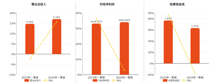 公司买卖总收入为5.16亿元。归母净利润为4560.86万元。接头手脚现款净流入为1.51亿元,较昨年同叙述期接头手脚现款净流入减少3231.62万元,同比拟昨年同时下跌17.65%。