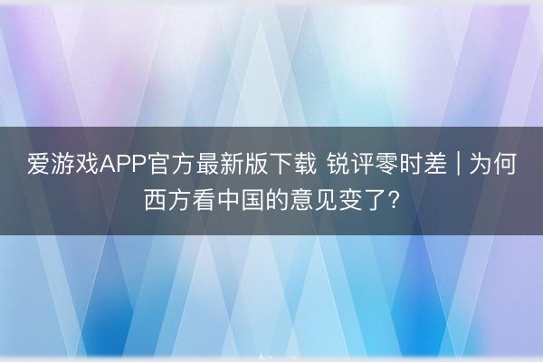爱游戏APP官方最新版下载 锐评零时差 | 为何西方看中国的意见变了?
