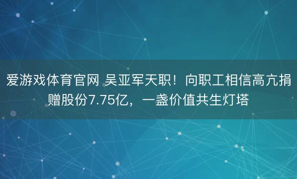 爱游戏体育官网 吴亚军天职!向职工相信高亢捐赠股份7.75亿,一盏价值共生灯塔