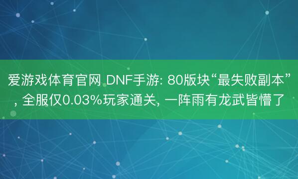 爱游戏体育官网 DNF手游: 80版块“最失败副本”, 全服仅0.03%玩家通关, 一阵雨有龙武皆懵了