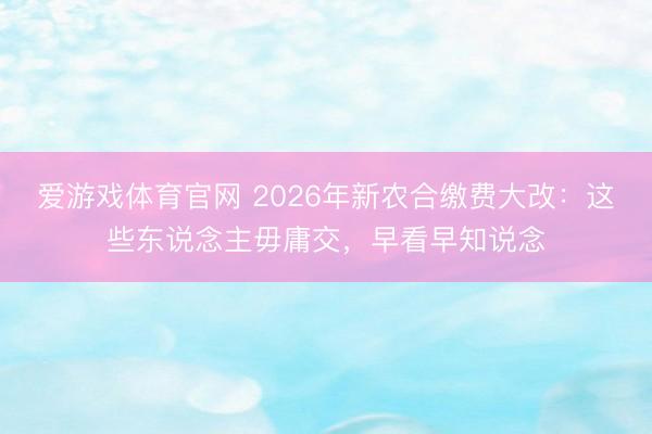 爱游戏体育官网 2026年新农合缴费大改:这些东说念主毋庸交,早看早知说念
