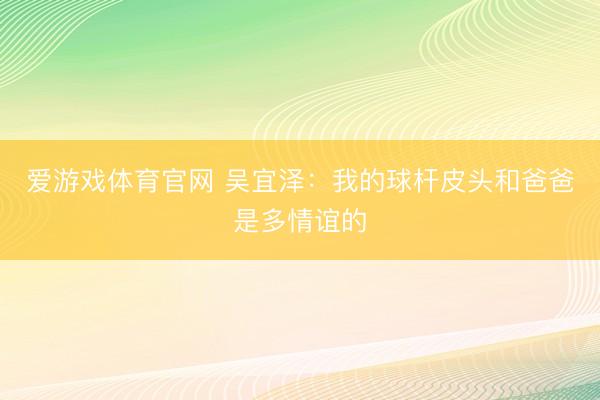 爱游戏体育官网 吴宜泽:我的球杆皮头和爸爸是多情谊的