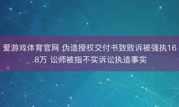 爱游戏体育官网 伪造授权交付书致败诉被强执16.8万 讼师被指不实诉讼执造事实