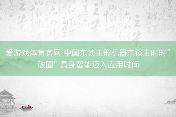 爱游戏体育官网 中国东谈主形机器东谈主时时“破圈” 具身智能迈入应用时间