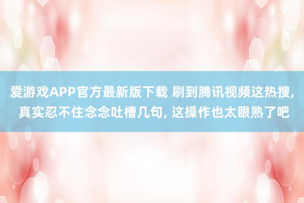 爱游戏APP官方最新版下载 刷到腾讯视频这热搜, 真实忍不住念念吐槽几句, 这操作也太眼熟了吧