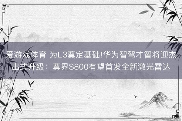 爱游戏体育 为L3奠定基础!华为智驾才智将迎杰出式升级:尊界S800有望首发全新激光雷达