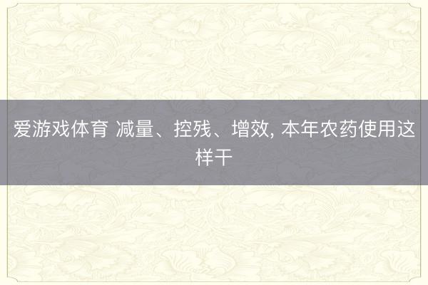 爱游戏体育 减量、控残、增效, 本年农药使用这样干
