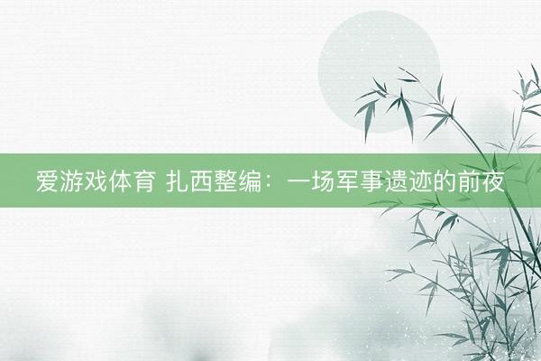 爱游戏体育 扎西整编:一场军事遗迹的前夜