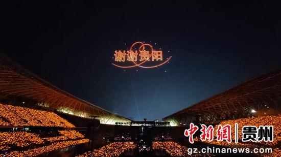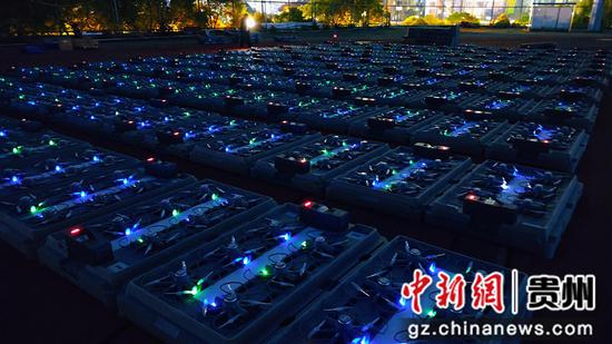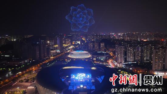 中新网贵州新闻4月19日电 18日晚,贵阳一大型演艺活动中,千架无东说念主机编队光影扮演以科技与艺术交融的空中视觉秀,为现场增添亮点。