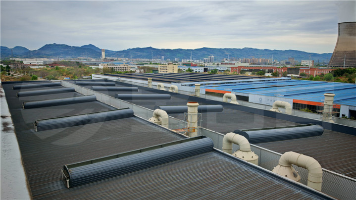 (1)透风排烟天窗依靠热压差旨趣完了当然透风,夏日可缩小车间温度5-8℃;