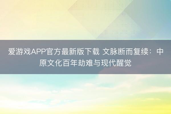 爱游戏APP官方最新版下载 文脉断而复续:中原文化百年劫难与现代醒觉