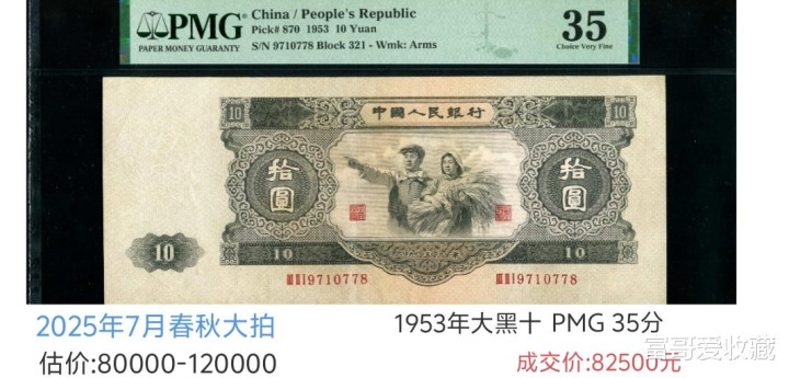 这张“大黑十”,估价达到了12万!PMG评级35分,终末只拍出了82500元。