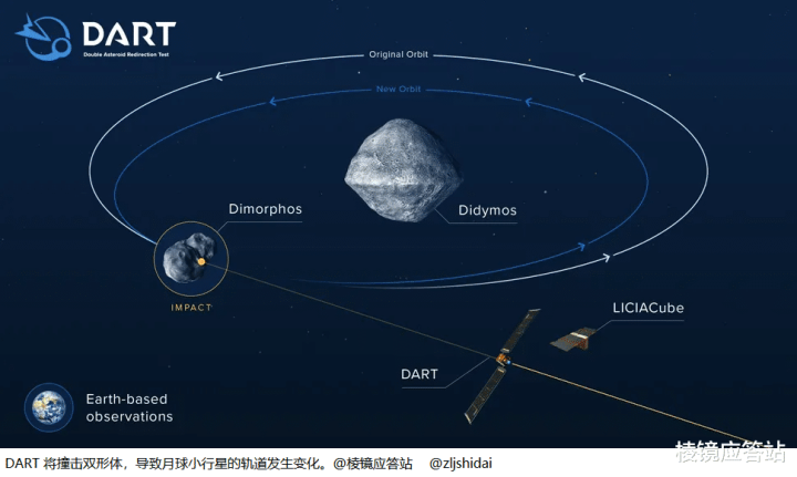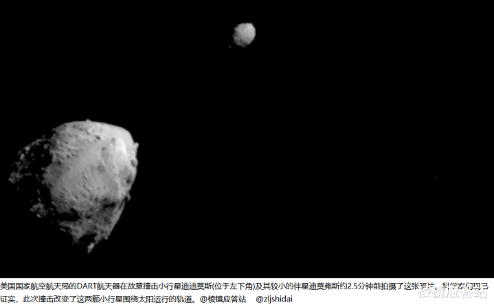 小行星"迪莫弗斯"绕着直径约780米的伴星"迪迪莫斯"运转,轨谈周期原为11小时55分钟。撞击之后,这个周期镌汰了整整33分钟。