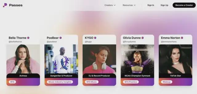 2022年,她躬行下场推出订阅制平台Passes,集直播、一双一通话、线上商店于一体,帮创作家通过付费聊天、视频等样子深度变现。