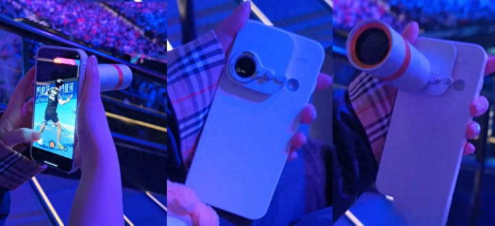 带增距镜的OPPO手机及不雅赛画面 · 分屏展示用带增距镜手机不雅赛及细节