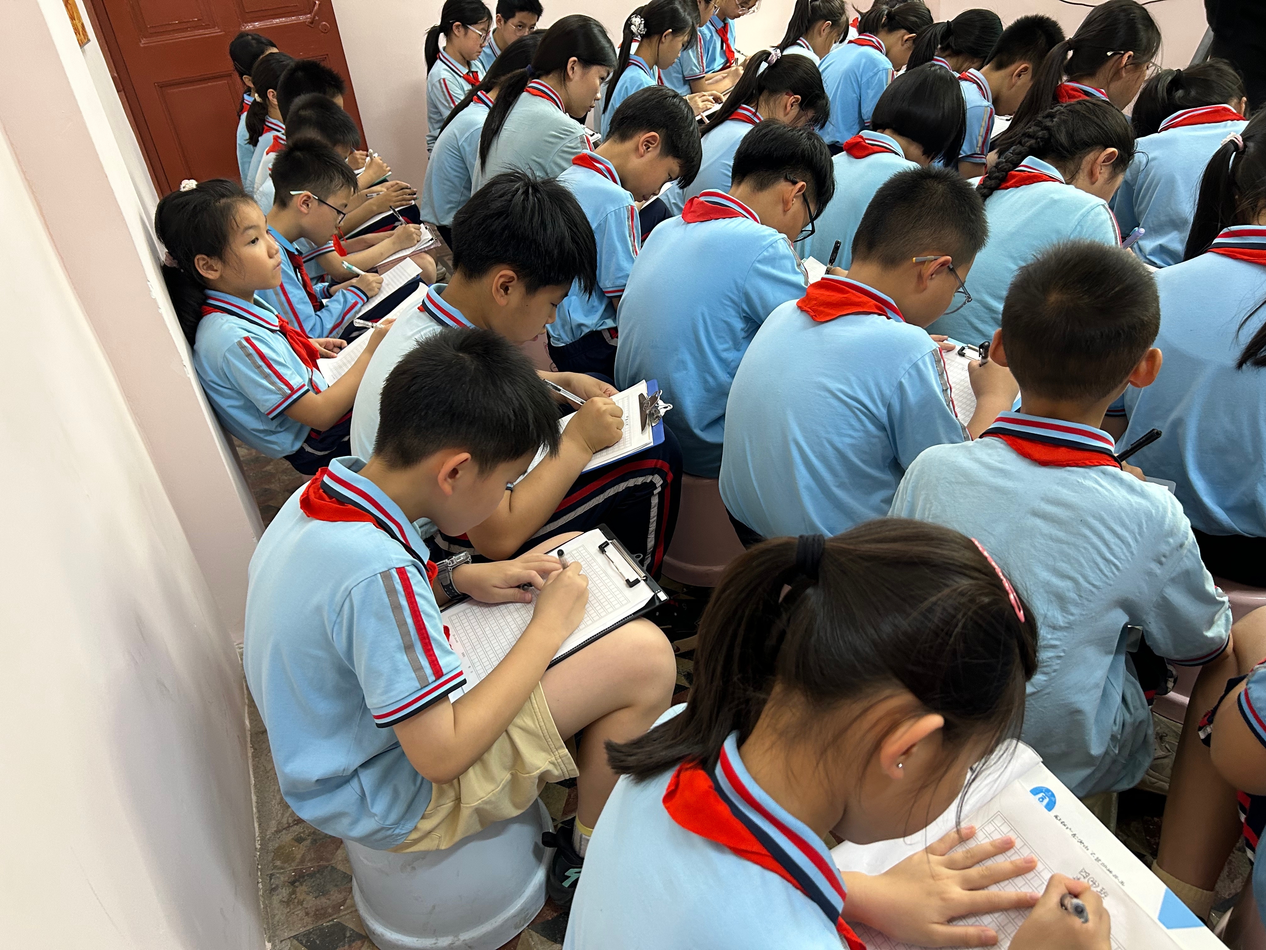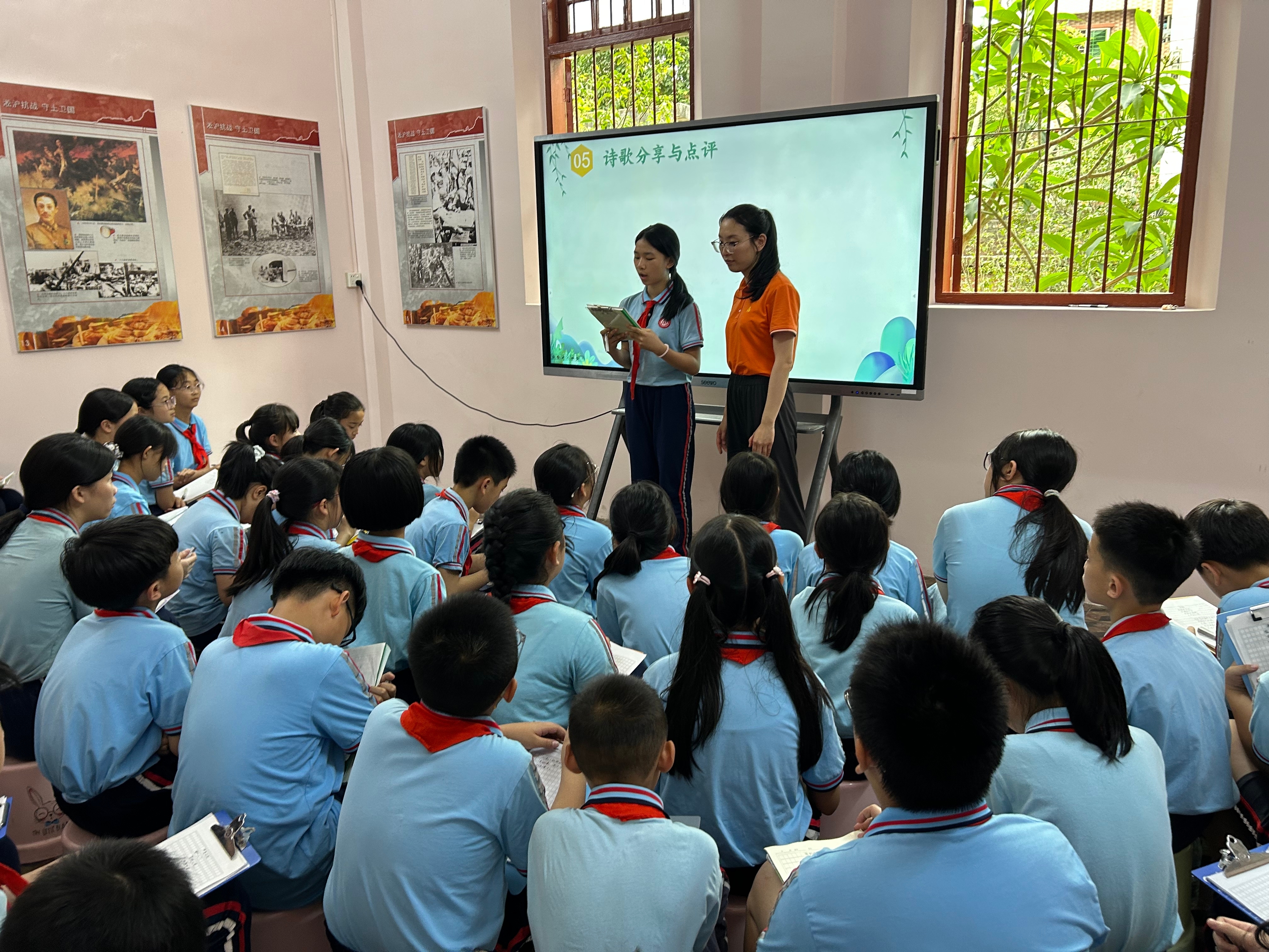 同学们或凝想静想,或提笔疾书,将内心的感动、对故国的喜爱、对先辈的敬仰以及新时期少年的志向,凝炼就一瞥行针织而充满力量的诗句。笔尖流淌的,不仅是文字,更是传承红色薪火的小儿心声。