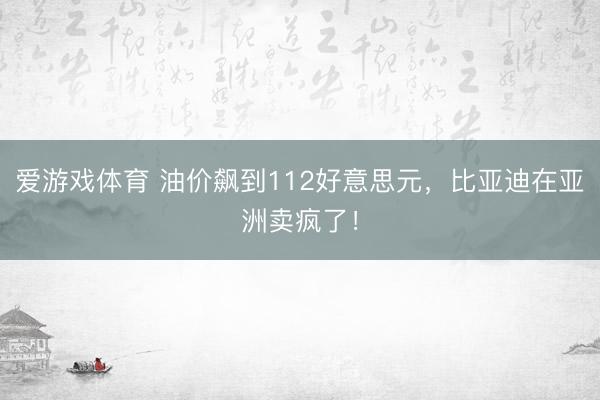 爱游戏体育 油价飙到112好意思元,比亚迪在亚洲卖疯了!