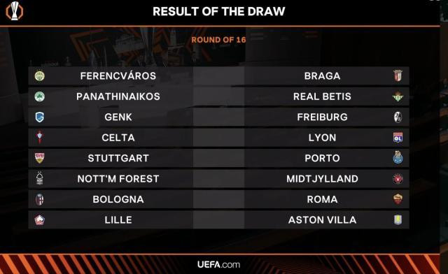 北京时辰2月27日20:00-21:00,2025-26赛季欧联杯欧协杯1/8决赛抽签典礼在瑞士尼翁的欧足联总部举行。由于淘汰赛对阵框架照旧固定,该阶段抽签只需抽取种子队落位。联赛阶段1-8名球队为种子队,开云淘汰赛附加赛晋级球队为非种子队。种子队先客后主。淘汰赛抽签不设规避原则。