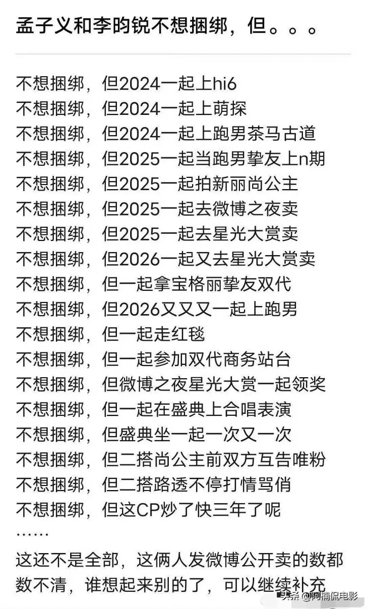 4月24日,《奔波吧》录制情侣特辑,孟子义与徐志胜组队,李昀锐则和白鹿一组。早前节目预热时,孟子义还与范丞丞互动玩梗,如今刻意消亡李昀锐,“昀牵孟绕”CP解绑意图昭然若揭。同场零疏浚、分组全程错开,避嫌作念得极其显着。