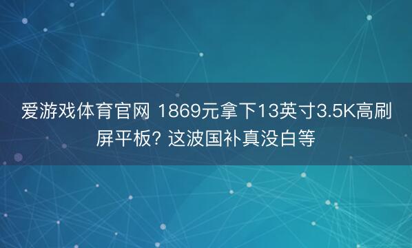 爱游戏体育官网 1869元拿下13英寸3.5K高刷屏平板? 这波国补真没白等