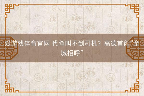 爱游戏体育官网 代驾叫不到司机?高德首创“全城招呼”